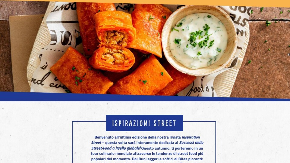 Benvenuto all’ultima edizione della nostra rivista Inspiration Street – questa volta sarà interamente dedicata ai Successi dello Street-Food a livello globale! Questo autunno, ti porteremo in un tour culinario mondiale attraverso le tendenze di street food più popolari del momento. Dai Bun leggeri e soffici ai Bites piccanti: portiamo il meglio dello street food nel tuo menù. Lasciati ispirare dalle influenze asiatiche, dai classici della tradizione arricchiti con un tocco sorprendente e da idee creative che sorprenderanno e delizieranno i clienti. Questa edizione è dedicata alla condivisione, alla scoperta e alla sorpresa – perché lo street food è perfetto nel tuo menu.